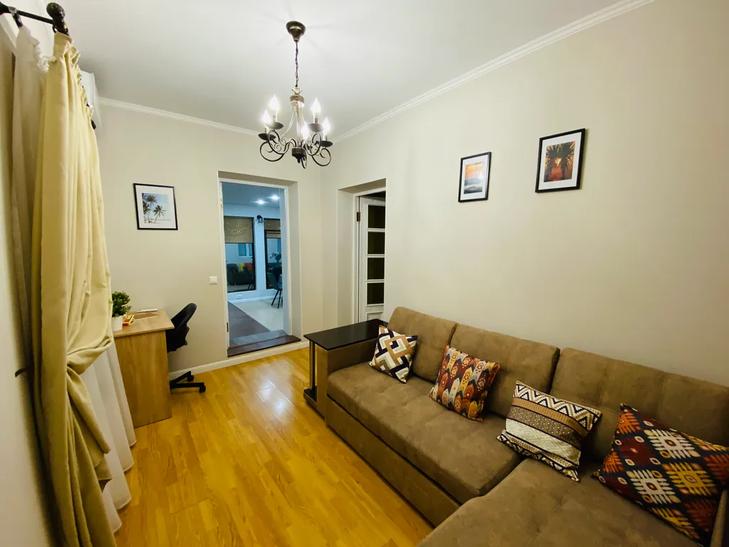 Гостиная-столовая: угловой диван-кровать 160х200 средней жесткости, телевизор, кондиционер.