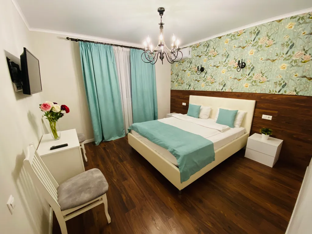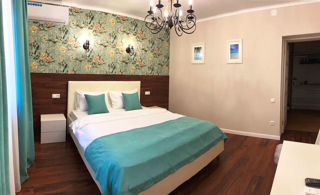 Спальня №1 + санузел (душевая, унитаз, умывальник): двуспальная кровать, кровать 160х200 с ортопедическим матрасом средней жесткости, кондиционер, телевизор.