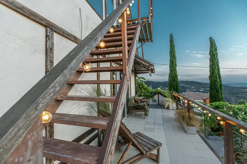 Терраса — из кухни второго этажа можно выйти на террасу. Можно работать с красивым видом на море и горы. Или просто им наслаждаться :) Здесь волшебно встречать закаты.