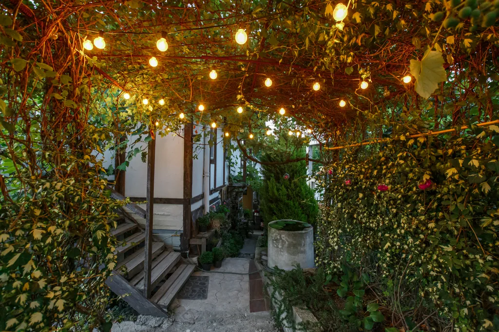 Одна зона — с лавандой, розами, виноградом и кипарисами в свободном доступе для гостей. Здесь стоит оборудованная зона для посиделок с мангалом, а ещё можно покачаться в подвесном кресле-коконе.