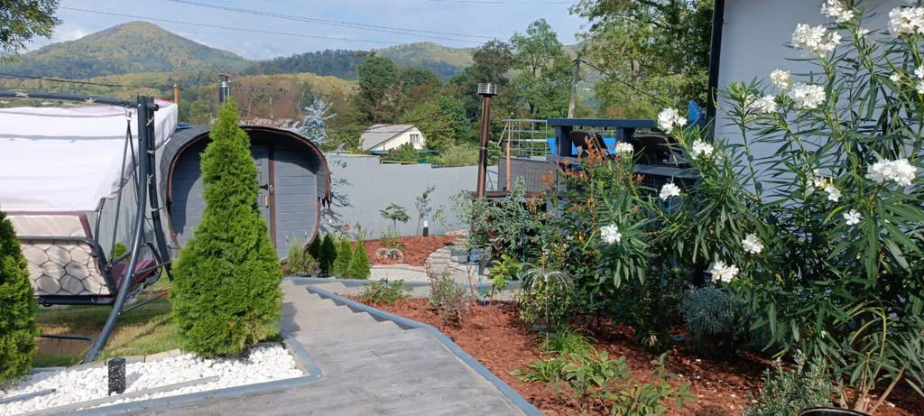 - большая терраса с садовой мебелью и панорамным видом на горы;