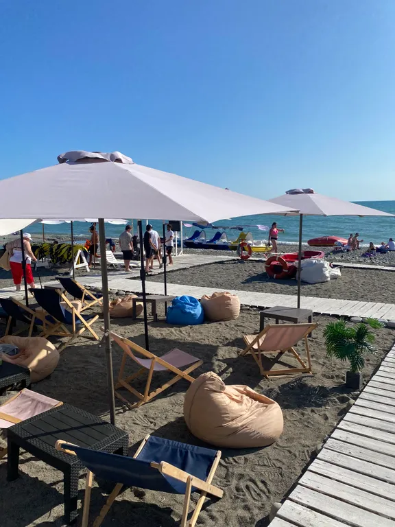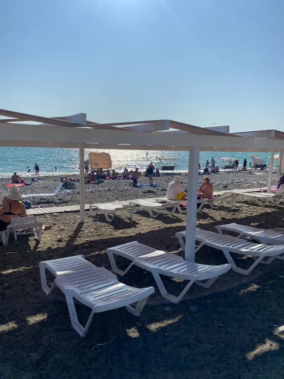 Самый широкий пляж на побережье, галька/песок, обустроенный, со всеми известными развлечениями. Пляж бесплатный.