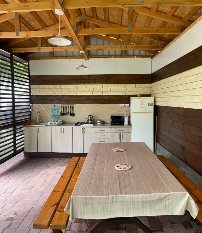Кухня -беседка только для двух домиков, оборудована всем необходимым.