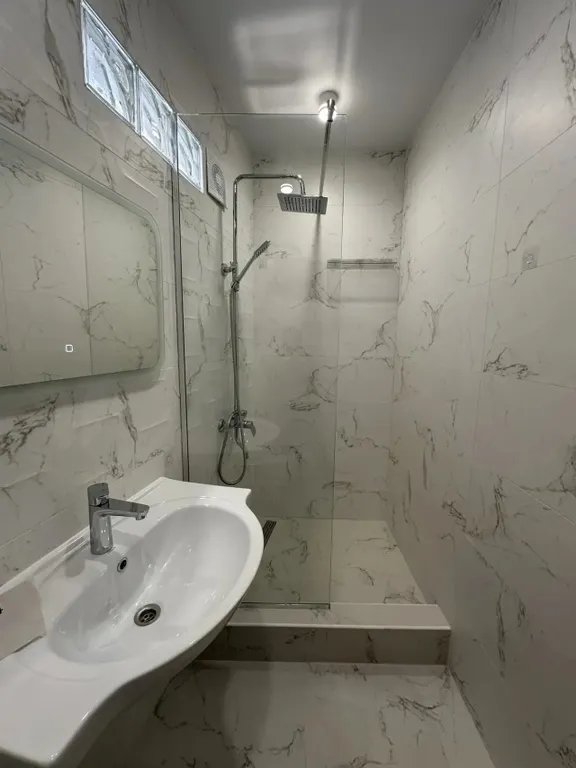 Ванная: душ, раковина, санузел, сушилка для белья, стиральная машина.