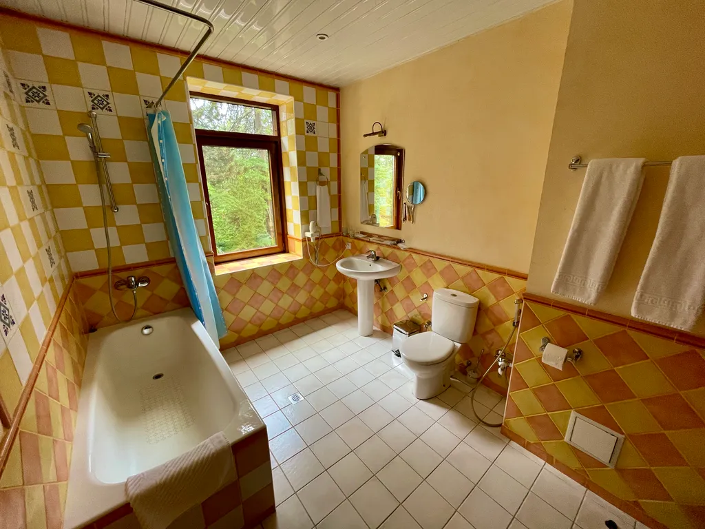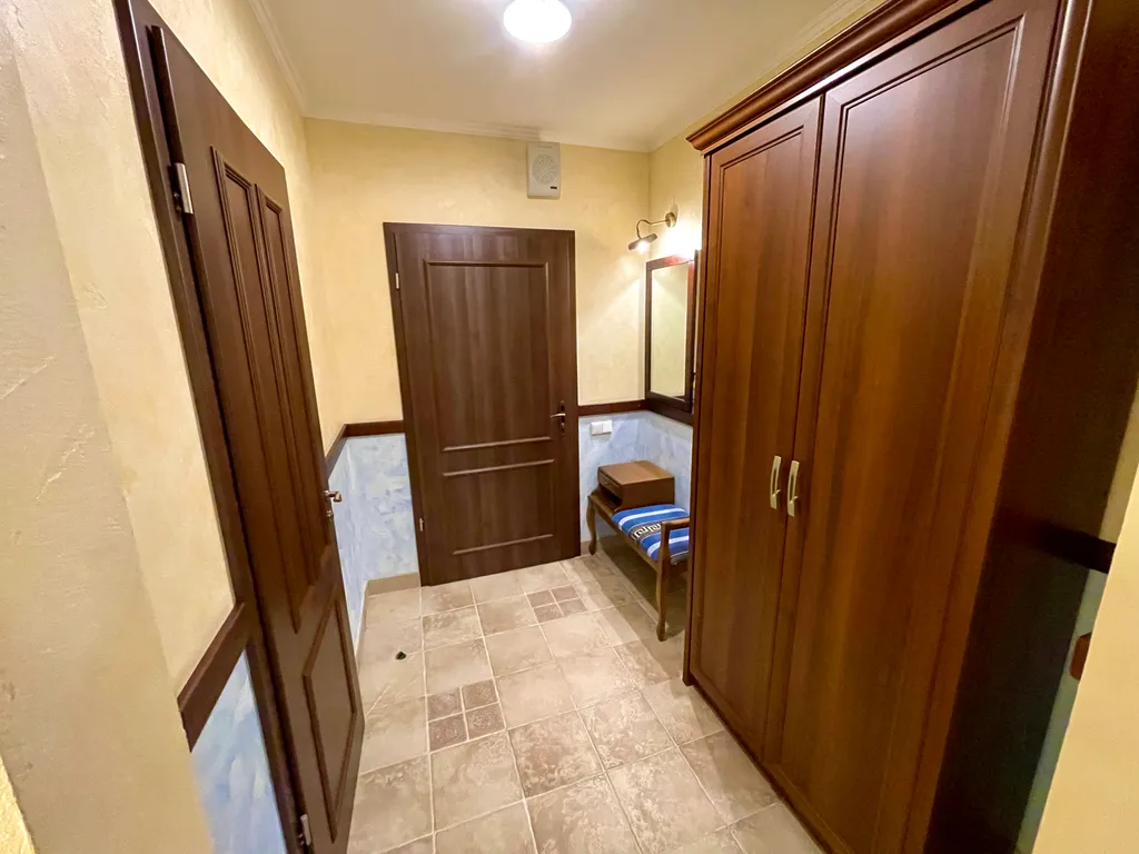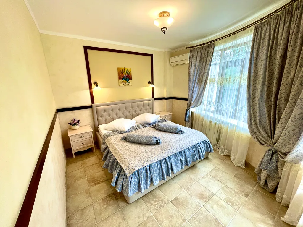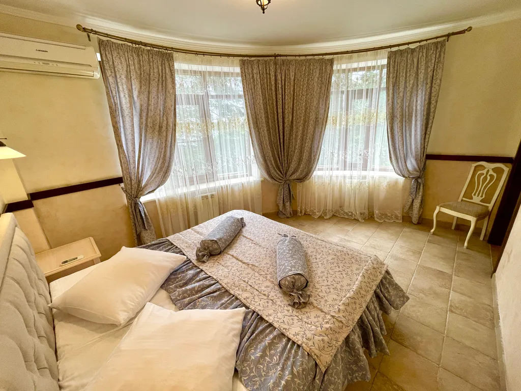 Номер оборудован 2 телевизорами, холодильником, 2 телефонами, сейфом. В номере имеются дополнительные места. Напольное покрытие – ламинат.