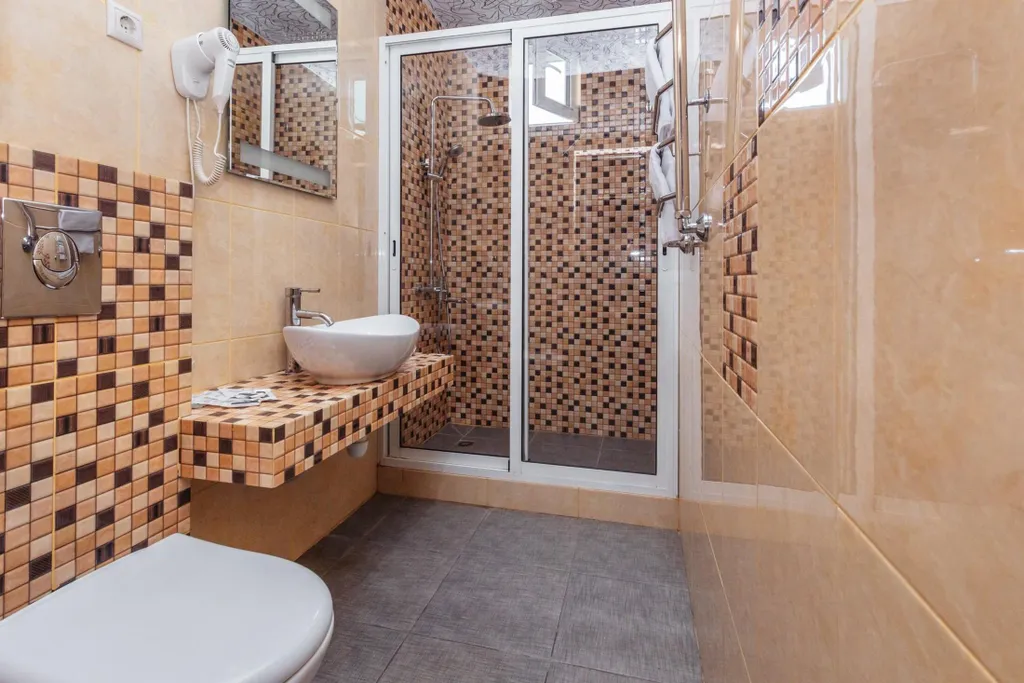 Собственный санузел оборудован душем, умывальником и туалетом. Горячая и холодная вода подаются круглосуточно.