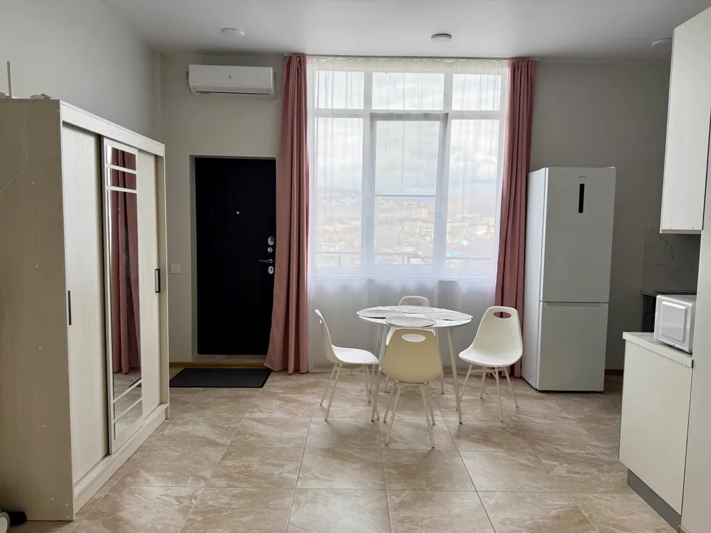 Дом находится в престижном районе Светлана. В 8 минутах пешком расположены супермаркеты «Магнит» и «Пятерочка», а также остановка автобуса №44. До моря и центральной набережной можно доехать за 10 минут на машине. Обратите внимание: вход в таунхаус осуществляется через лестницу, так как дом расположен на рельефном участке.