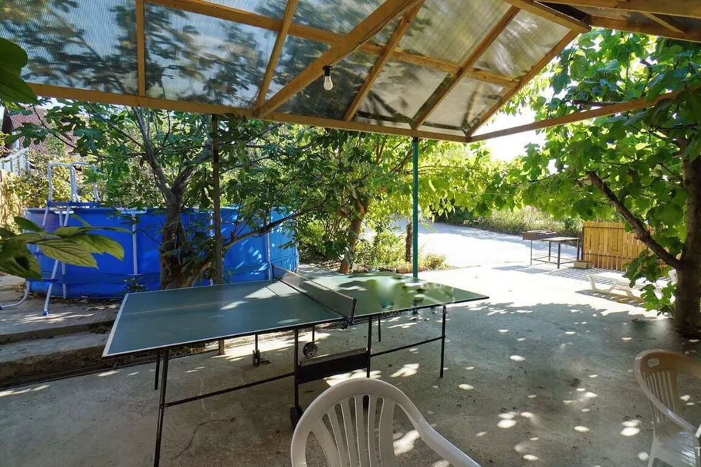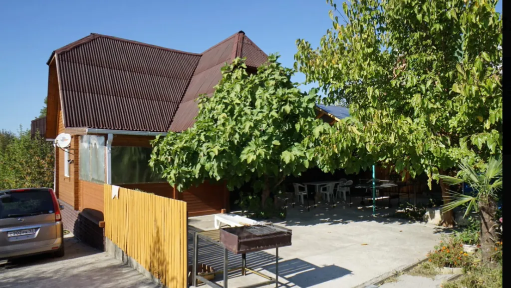 На участке большой сад : виноград, черешня, фундук, яблони, хурма, инжир, груша и другие деревья.