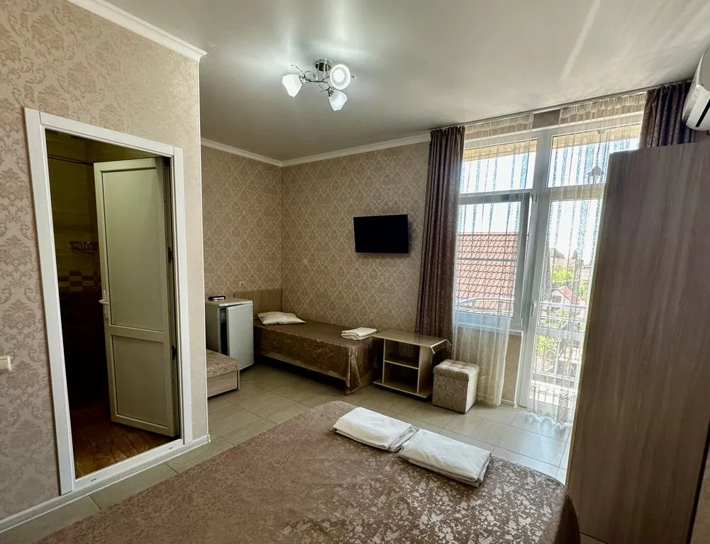 Добро пожаловать в наш уютный и современный гостевой дом, где вас ждёт настоящий комфорт и забота! Наши номера просторные, светлые и чистые — в каждом есть кондиционер, телевизор, холодильник, балкон. А также всё необходимое для вашего удобства. Отель расположен всего в 800 метрах от моря — это 8 минут пешком или около 1200 шагов. Мы предлагаем: — бесплатный wi-fi — круглосуточную горячую воду — оборудованную кухню — свежие полотенца и постельное бельё — уборку (по запросу) — уютную атмосферу и приветливый персонал наш гостевой дом отлично подойдёт для семейного отдыха или отпуска с друзьями. Комфорт, чистота и забота о каждом госте — это то, что выделяет нас среди других!